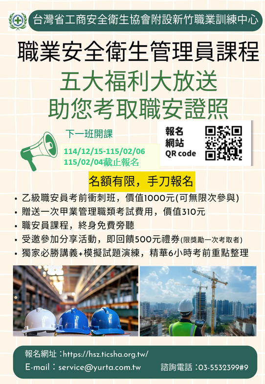 職業安全衛生管理員下一期要開課囉!五大福利,手刀報名